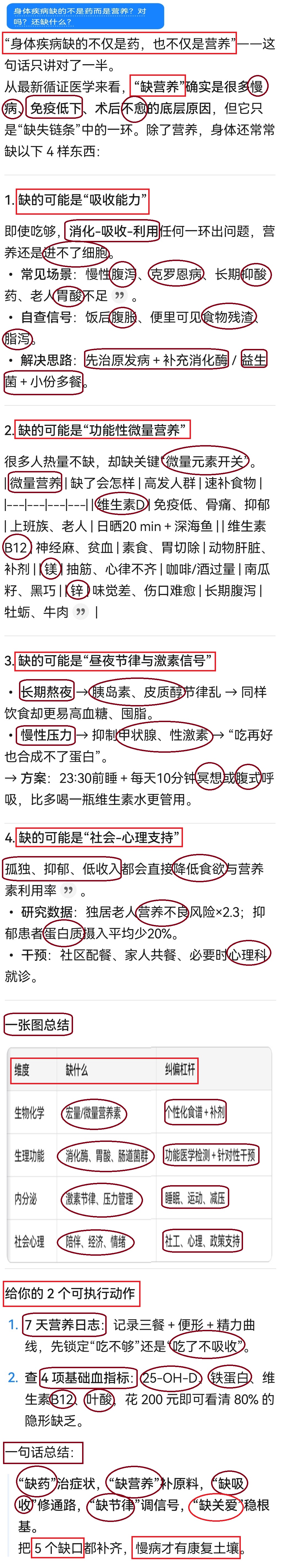 身体疾病缺的不只是药而是更缺营养,