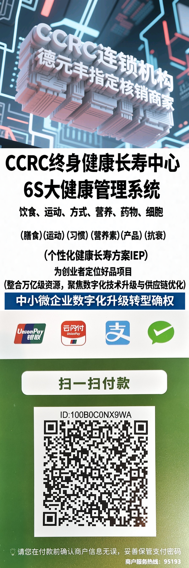 (1)扫码支付¥9.9元获取价值¥99元的CCRC中心,