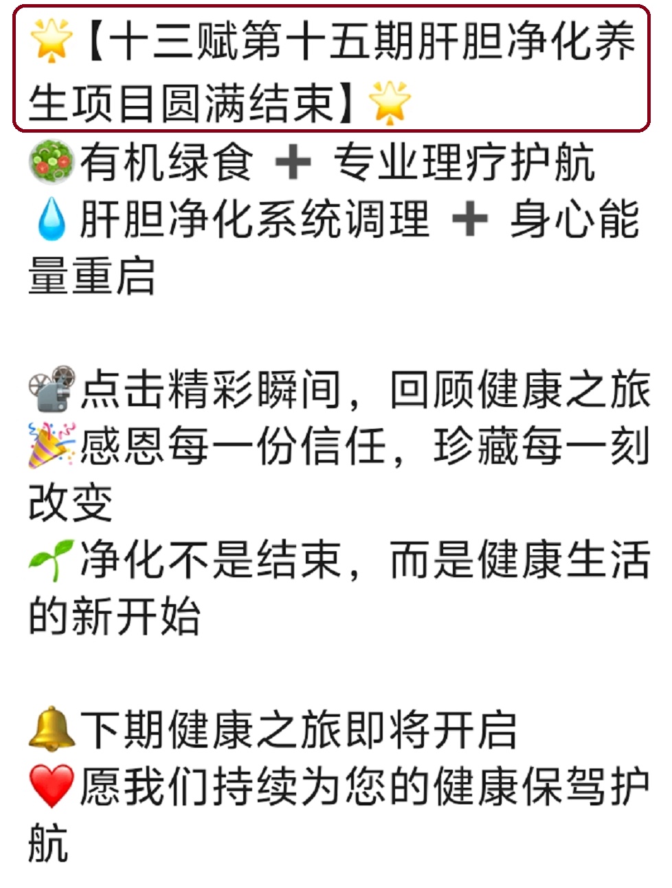 【2026.1.11十三赋肝胆净化十五期】圆满结束,感谢您的热情参与,一起见证身心焕新的美好时刻,期待与您共赴下一场健康之旅,精彩瞬间一睹为快,您就是这场健康蜕变的最佳见证人。